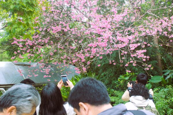 ビオスの丘園内で満開のカンヒザクラもゆっくり間近で観賞。